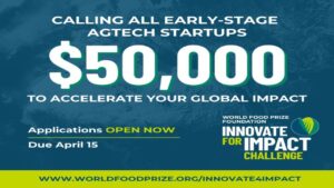 Applications are now open for the Innovate for Impact Challenge, a prestigious global AgTech innovation program hosted by the World Food Prize Foundation, in collaboration